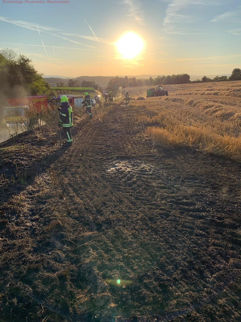 An diesem Abend wurde unsere Wehr zu einem Kleinbrand außerhalb des Ortes alarmiert. Die Einsatzstelle befand sich an der Landstraße in Richtung Rodenbach/Altenstadt kurz nach Ortsausgang. Dort stand die Böschung in Flammen, diese hatten auch bereits auf ein benachbartes Feld mit trockenem Stroh übergegriffen.