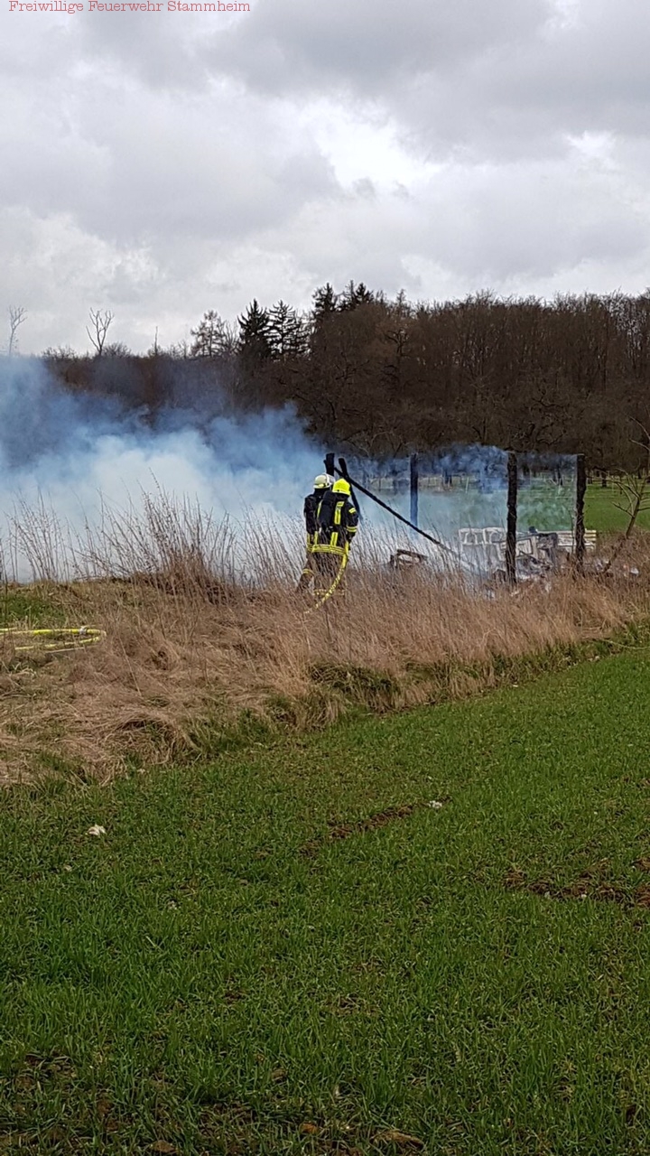 Am Sonntagnachmittag, 19.03.2017, wurde die Freiwillige Feuerwehr Stammheim um 14:45 alarmiert. Eine Bürgerin meldete einen Gartenhüttenbrand außerhalb des Ortes in Richtung Altenstadt.