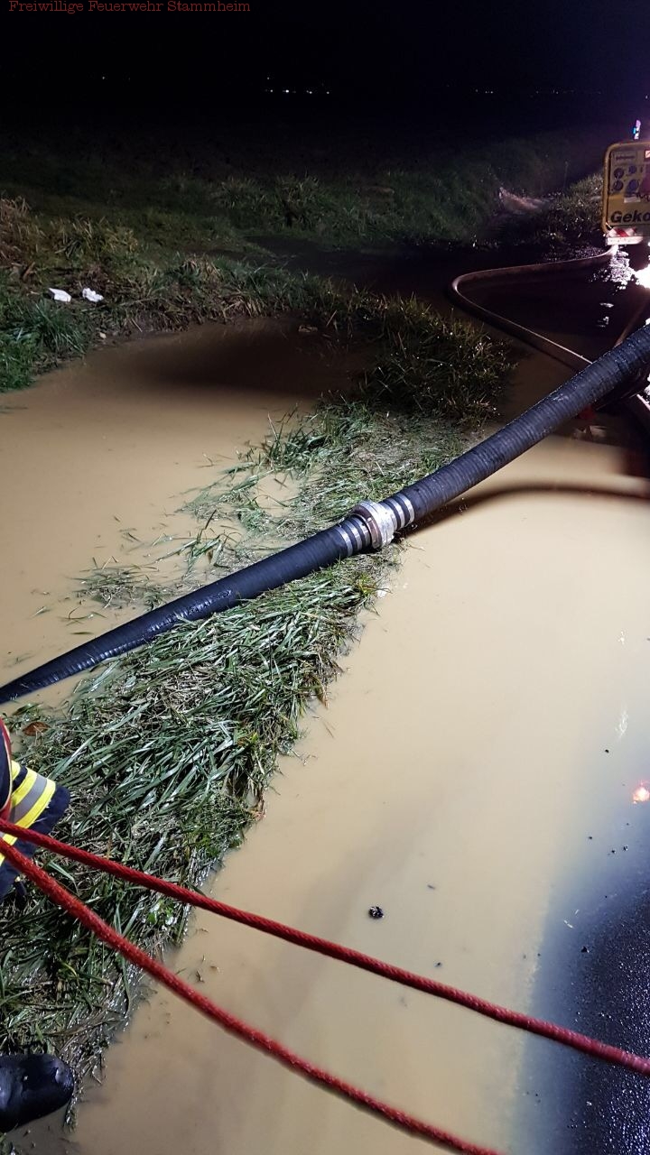 Bedingt durch ein verstopftes Drainagerohr auf der Landstraße 3188 in Richtung Staden wurde die Freiwillige Feuerwehr Stammheim am Montag, 11.12.2017 gegen 16:30 Uhr zu einer kleinen Hilfeleistung alarmiert.
