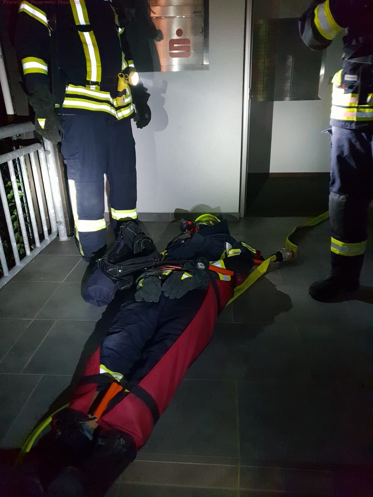 Aufgabe bei dieser Übung war es, in der durch einen Brand verrauchten Sparkasse unter Atemschutz nach einer vermissten Person zu suchen. Anbei ein paar Bilder hierzu !