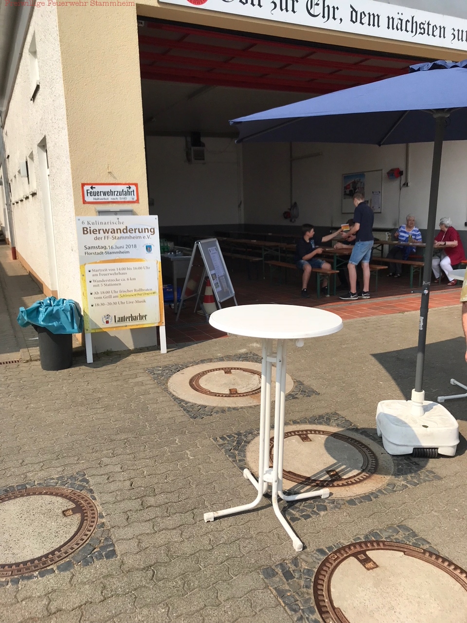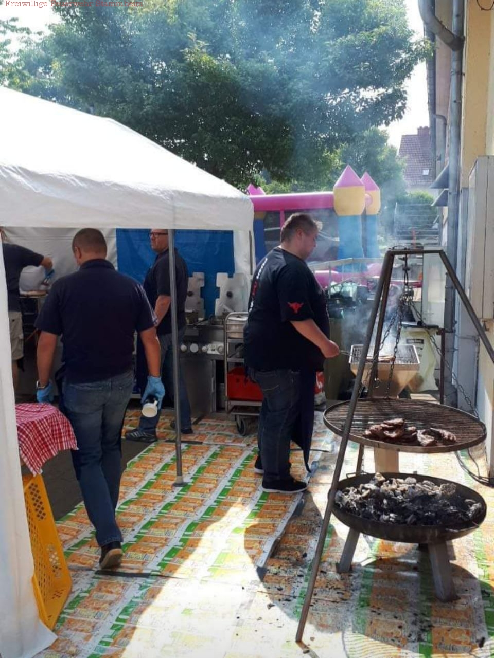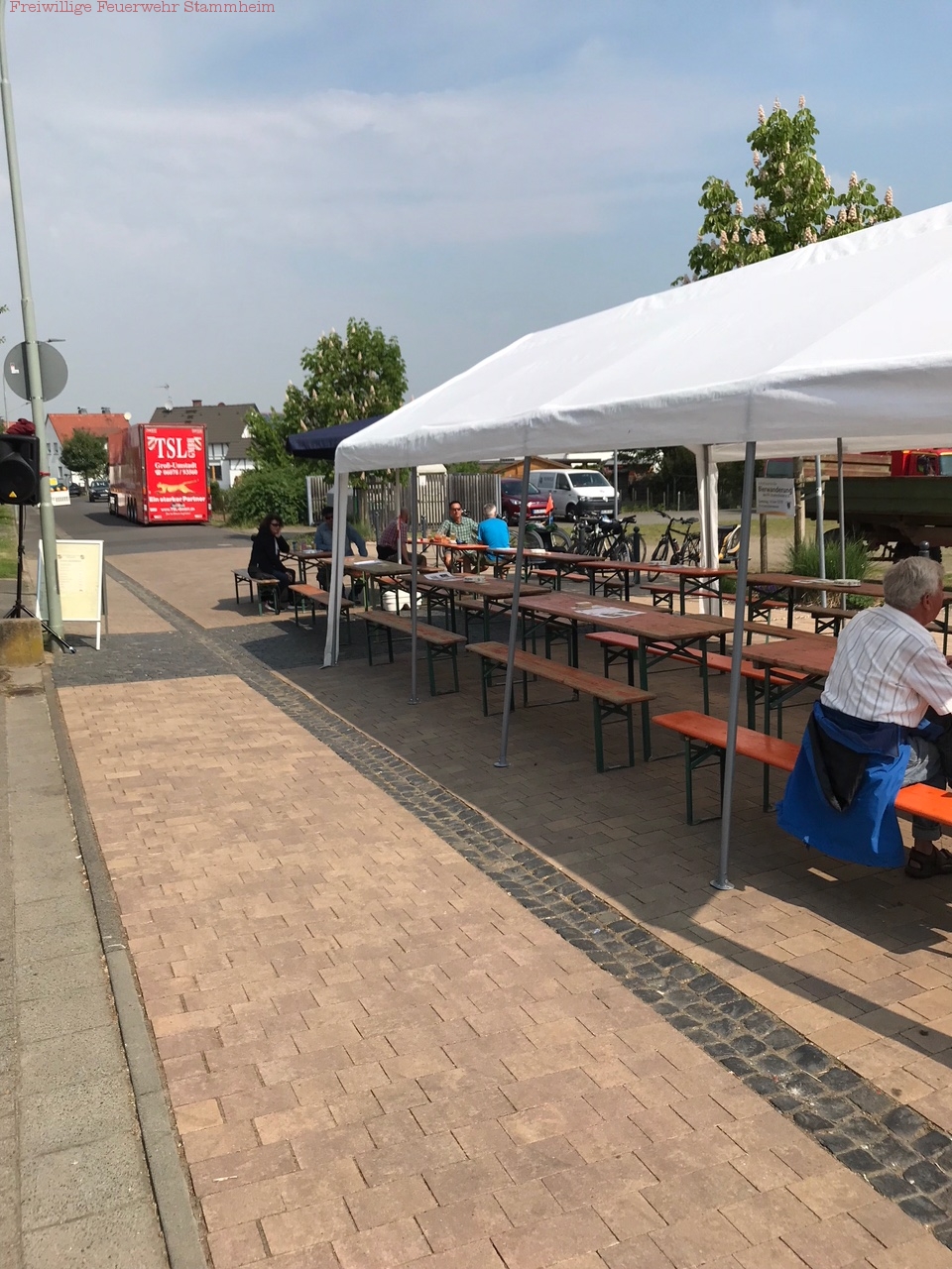 Der Verkauf der berühmten Bauchlappe, Steaks, Currywurst und Pommes lief ab 11:00 Uhr hervorragend an und riss bis nachmittags nicht ab. Auch an der Theke mit frisch gezapftem Bier und selbstgemachtem Apfelwein bildeten sich zuweilen Schlangen. Die Kinder konnten sich auf dem Spielplatz und erwähnter Hüpfburg austoben. Am Nachmittag wurde ein reichhaltiges Kuchen- und Tortenbuffet mit selbstgebackenen Spezialitäten angeboten, welches ebenfalls sehr gut angenommen wurde. Das Wetter spielte gar den ganzen Tag mit, von Regen war keine Spur zu erkennen. Die Jugendfeuerwehr Stammheim, welcher der gesamte Erlös zu Gute kommt, half bei der Bedienung der Gäste, der Betreuung der Hüpfburg und dem Abwasch.