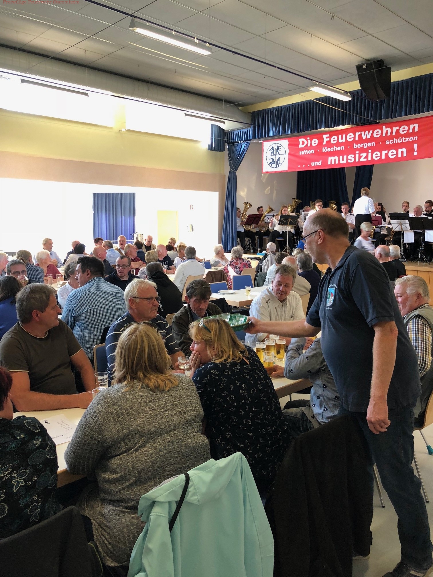 Wie immer war die Veranstaltung ausverkauft und ein voller Erfolg. Die Gäste konnten sich am reichhaltigen Schlachtbuffet und anschließend an selbst gebackenen Kuchen und Torten satt essen. Dazu spielte der Musikzug der Feuerwehr Stammheim, unterstützt durch Musiker andere Musikzüge, auf.